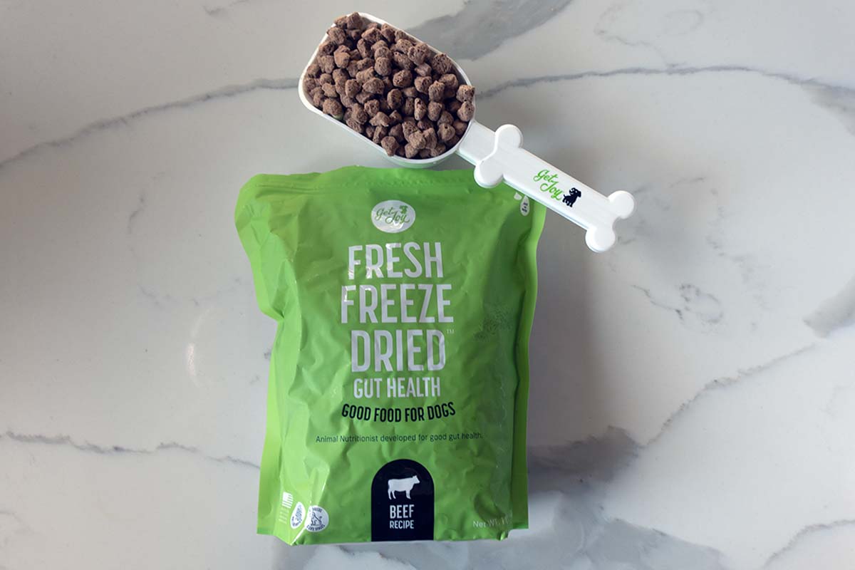 Get Joy stand out from the other freeze-dried raw brands on this list for their emphasis on gut health. Their recipes include some targeted probiotic strains to support healthy digestion, nutrient absorption, and a balanced microbiome to help reduce tummy upsets.