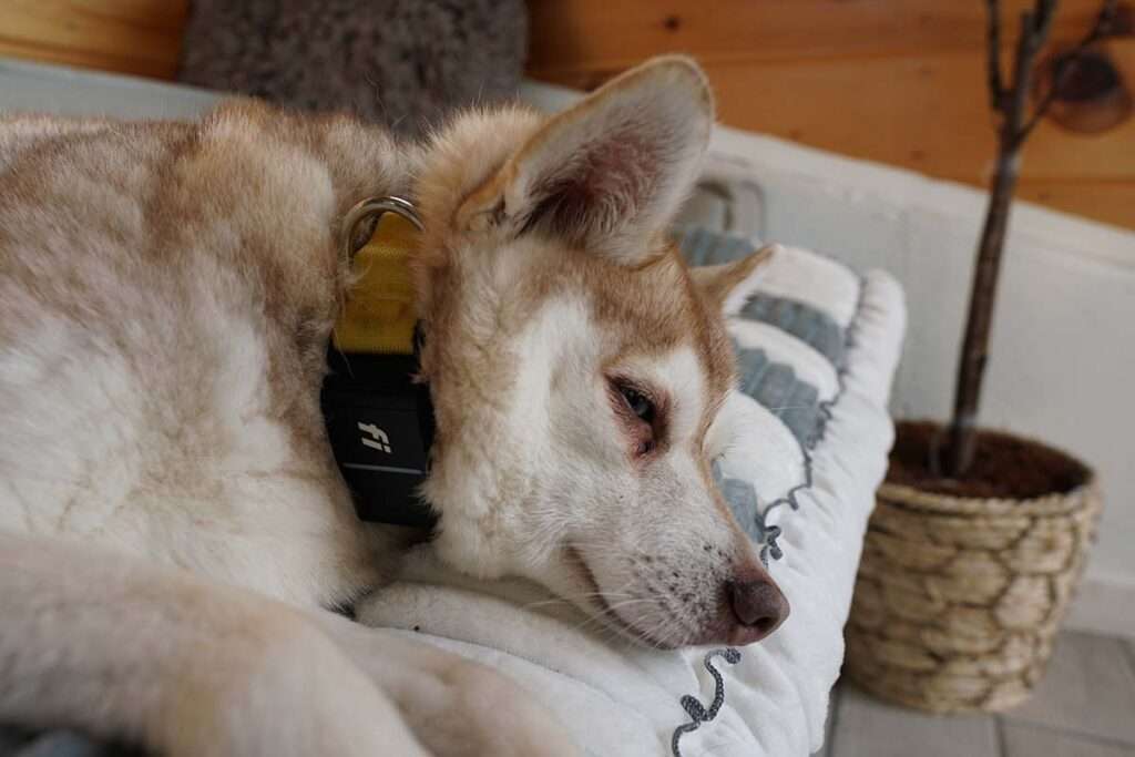 Copper sleeping with his Fi collar (Photo: Life With Klee Kai)